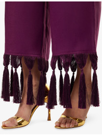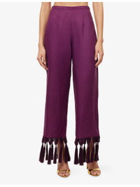 PRODUCT DETAILS - Taller Marmo linen trousers - 100% linen; embellishments 65% acetate, 35% polycotton - Concealed zip fastening at side - Relaxed fit, high-rise, wide leg, darts at front and back, fringed cuffs - Specialist dry clean only - Made in Italy - True to size - Size UK 8: rise 14in / 36cm, inside leg 31in / 80cm, leg opening 22in / 56cm - Model is 5ft 10in/1.78m and wears a size UK 8 - Lightweight, slight stretch Ref: R04563498
