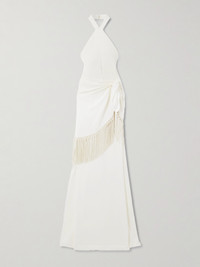 Meteora Tasseled Layered Crepe Halterneck Gown