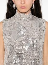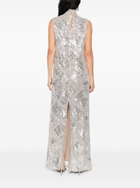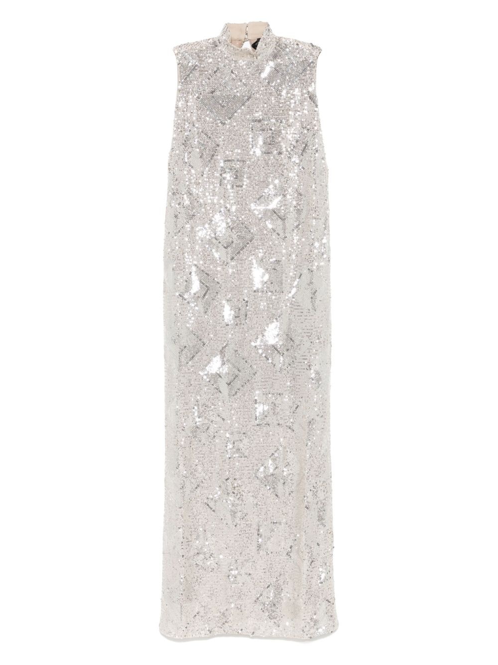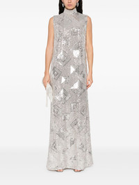 sequinned maxi dress Highlights - Silver-tone - Rear button fastening - Stand-up collar - Sleeveless - Rear slit Made in Italy Composition Outer: Polyester 100% Lining: Polyester 100%, Acetate 78%, Viscose 22% SIZE & FIT Model measurements Height 5 ft 9 in(1.75 m) Bust/Chest 32.67 in(83 cm) Hips 36.22 in(92 cm) Waist 24.8 in(63 cm) FittingInformation Designed to be unstructured, offering a loose fit throughout The vented hem offers movement at the rear Made from a midweight non-stretch fabric