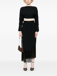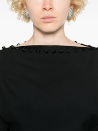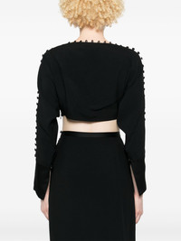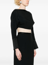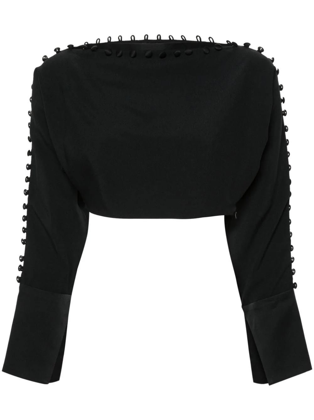 Mila blouse Highlights - Black - Cady texture - Concealed side zip fastening - Fabric-covered buttons - Slash neck - Long sleeves - Buttoned cuffs - Straight hem - Cropped Made in Italy Composition Acetate 78%, Viscose 22% SIZE & FIT Model measurements Height 5 ft 9 in(1.75 m) Bust/Chest 34.64 in(88 cm) Hips 36.61 in(93 cm) Waist 26.37 in(67 cm) FittingInformation Designed for a relaxed fit, this piece allows for comfort and movement when worn Cropped in length Made from a midweight non-stretch fabric
