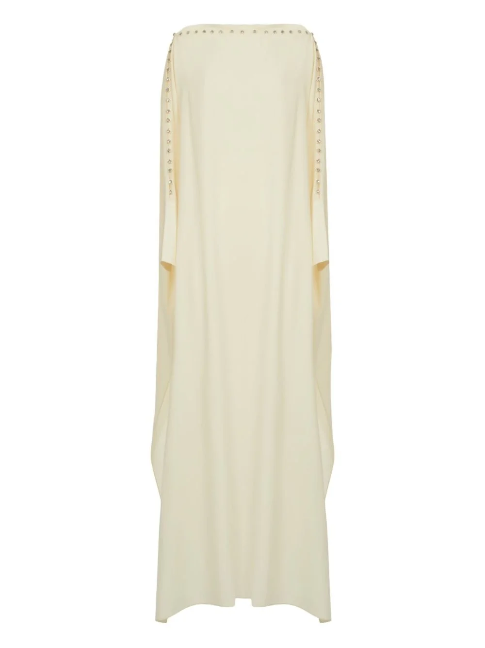 Mila dress Highlights - Light beige - Crystal embellishments - Boat neck - Long sleeves - Asymmetric hem - Relaxed fit Made in Italy Composition Viscose 78%, Acetate 22%