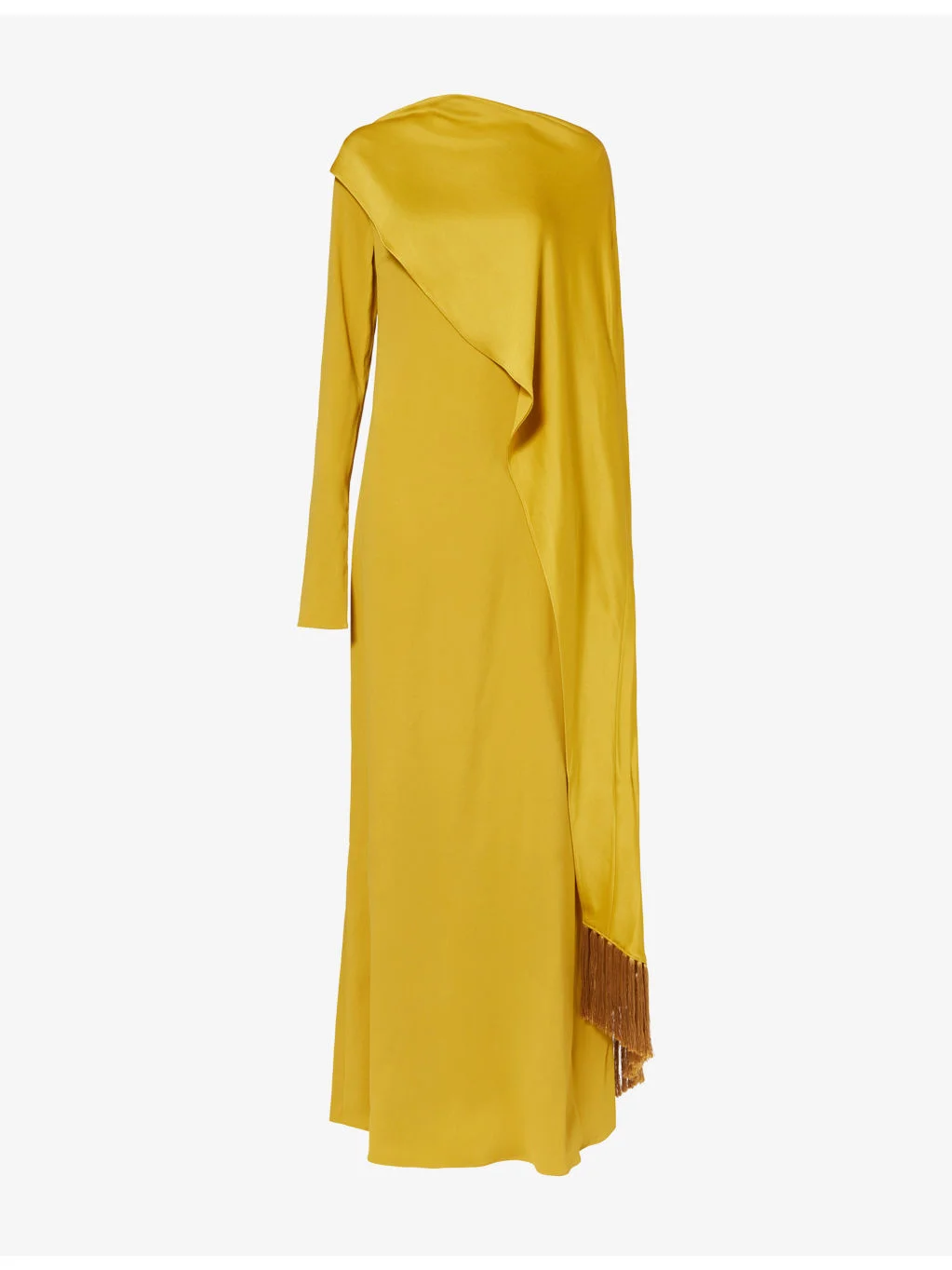 PRODUCT DETAILS - Taller Marmo stretch-woven maxi dress - 74% acetate, 22% viscose, 4% elastane; contrast 78% acetate, 22% viscose; embellishments 100% acetate - Concealed zip fastening at back - Regular fit, round-neck, long sleeves, split cuffs, panel around body, all-over satin and crepe texture, split at back, fringed at back - Specialist dry clean only - Made in Italy - True to size - Size UK 10: length 59in / 150cm - Model is 5ft 10in / 1.78m and wears a size UK 10 - Lightweight, slight stretch Ref: R04547857