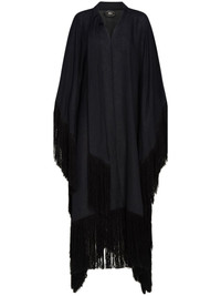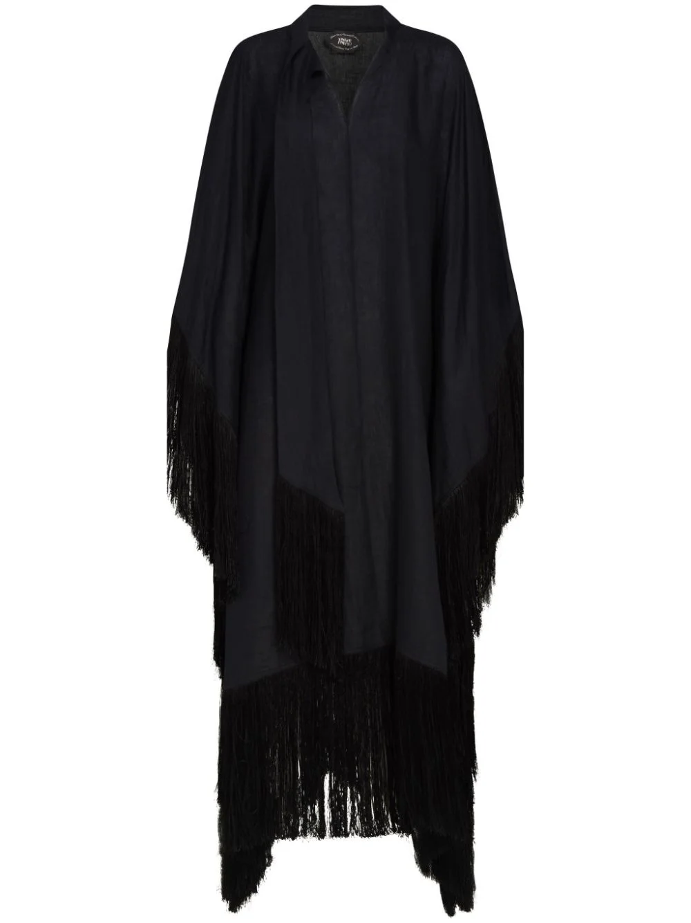 Iguazu fringed kaftan dress Highlights - Black - Linen/flax - Satin finish - Kaftan silhouette - V-neck - Attached scarf - Fringed edge - Long sleeves - Asymmetric hem - Long length Made in Italy Composition Linen/Flax 100%, Acetate 50%, Viscose 50% Washing instructions Dry Clean Only