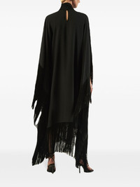 Mrs Ross asymmetric kaftan dress Highlights - Black - Crepe texture - Satin trim - Kaftan silhouette - Mock neck - Rear button fastening - Keyhole detail to the rear - Long sleeves - Fringe detailing - Asymmetric hem Made in Italy Composition Acetate 78%, Viscose 22%