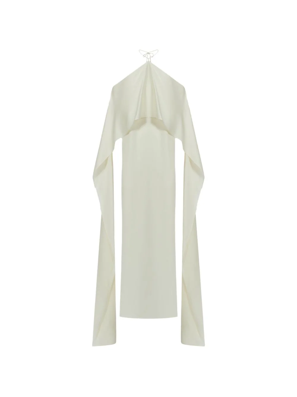 Nan halterneck dress Highlights - Open back - Halterneck - Sleeveless - Cape detail - Back slit Made in Italy Composition Acetate 74%, Viscose 22%, Elastane 4% Washing instructions Dry Clean Only
