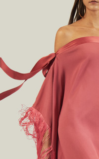 Named after the iconic photographer, the Aarons Kaftan was made for sun lovers. It is made from soft crepe cady and fully trimmed with silky fringes. This kaftan features an off-the-shoulder neckline and ribbons to help you adjust its fit, allowing you to make a knot or a bow. PRODUCT DETAILS - , * * Composition: 78%AC 22%VI - FRINGES 100% AC* * Made in Italy