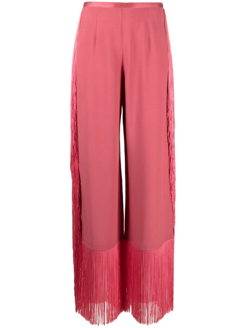 Nevada fringed straight-leg trousers Taller Marmo is lauded for its unexpected details, and these Nevada trousers are a case in point. Theyâre cut from peony-pink crepe to a straight-leg silhouette and traced with dynamic fringing at the sides and hem. Highlights - Peony pink - Crepe texture - Dart detailing - Fringed edge - High-waisted - Rear button and zip fastening - Straight leg Made in Italy Composition Acetate 78%, Viscose 22%
