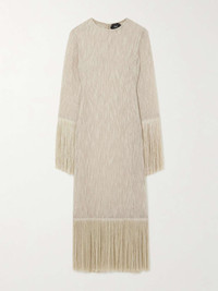 EDITORS'NOTES Taller Marmo's elegant eveningwear is designed to make women look and feel their very best. Knitted from linen and cotton-blend, this 'Nile' gown has a floaty silhouette emphasized by swishy fringing along the cuffs and hem. Temper the open construction with tonal underpinnings. SIZE & FIT Model measurements: - Fits true to size, however those who are between sizes should take the smaller size - Designed for a relaxed fit - Lightweight, non-stretchy fabric with fringed trim - Model is 177cm/ 5'10" and is wearing an IT 38 - Bust: 82cm/ 32.5" - Waist: 66cm/ 26" - Hip: 90cm/ 35.5" DETAILS & CARE - Ecru linen and cotton-blend, ecru fringes - Concealed zip fastening along side, button-fastening keyhole at back - 63% linen, 36% cotton, 1% viscose; trim: 50% viscose, 50% acetate - Specialist clean