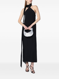halter-neck fringe maxi dress Highlights - Black - Halter neck - Fringe detail - Sleeveless Made in Italy Composition Acrylic 78%, Viscose 22% Washing instructions Read Manufacturer Guidelines