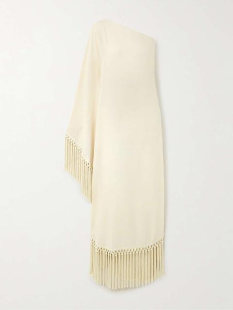 EDITORS'NOTES Make a big event feel even more special in Taller Marmo's 'Nina' dress. It's made from cady that drapes through the body and has an elegant halterneck that cuts the shoulders beautifully. The swishy fringing ups the drama factor, whether you're dancing or circulating the room. SIZE & FIT Model measurements: - Fits true to size, take your normal size - Those with a curvy figure may wish to take the next size up - Designed for a slim fit - Ties at the back for an adjustable fit - Mid-weight, non-stretchy fabric with fringed trim - Model is 177cm/ 5'10" and is wearing an IT 38 - Bust: 79cm/ 31" - Waist: 61cm/ 24" - Hip: 89cm/ 35" DETAILS & CARE - Black cady - Concealed zip fastening at side; ties at neck - 78% acetate, 22% viscose; trim; 100% acetate - Specialist clean
