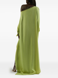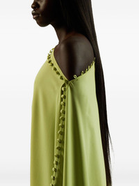 one-shoulder button-detail kaftan Highlights - Lime green - One-shoulder neckline - Button embellishment - Long sleeves - Side splits - Loose fit Made in Italy Composition Acetate 78%, Viscose 22% Washing instructions Dry Clean Only