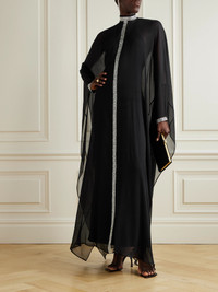 Taller Marmo's 'Parthenon' gown channels the "timeless grandeur of bygone eras". Made in Italy from sheer silk-crepon, it has a flowy, loose shape that looks beautiful in motion and is traced with sparkling Swarovski crystals. The detachable halterneck slip dress offers plenty of coverage. Size & Fit - Fits true to size, take your normal size - Cut for a slim fit across the shoulders, loose fit through the body - Designed with a detachable, slim-fitting slip - Lightweight, non-stretchy fabric - Model is 177cm/ 5'10" and is wearing an IT 40 Model measurements: - Bust: 80cm/ 31.5" - Waist: 60cm/ 23.5" - Hip: 89cm/ 35" Details & Care - Black silk-crepon - Button-fastening keyhole at back - 100% silk; lining: 74% acetate, 22% viscose, 4% elastane - Dry clean