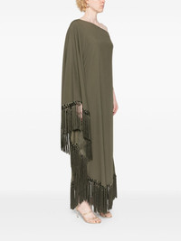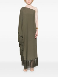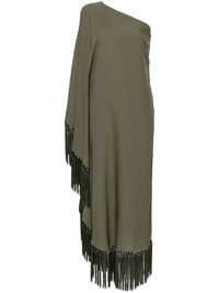 Arno maxi dress Highlights - Khaki - Crepe cady texture - Asymmetric design - Concealed side zip fastening - Off-shoulder - Single long sleeve - Tassel trim - Unlined - Asymmetric hem - Long length Made in Italy Composition Lining: Acetate 100% Outer: Acetate 78%, Viscose 22% SIZE & FIT Model measurements Height 5 ft 9 in(1.75 m) Bust/Chest 34.64 in(88 cm) Hips 36.61 in(93 cm) Waist 26.37 in(67 cm) FittingInformation Designed for a slim fit that sits just away from the body offering a close yet comfortable fit Made from a midweight non-stretch fabric Washing instructions Dry Clean Only