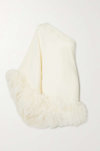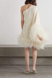 EDITORS'NOTES This 'Piccolo' mini dress is a fun update to Taller Marmo's sweeping 'Ubud' gown that channels the same '70s glamour. Made in Italy, it's cut from crepe in a one-sleeve silhouette and trimmed with wispy feathers. Wear it to parties with statement pumps and an embellished clutch. SIZE & FIT - Fits true to size, take your normal size - Designed for a loose fit - Mid-weight, non-stretchy fabric with feather trim - Model is 177cm/ 5'10" and is wearing a FR 36 DETAILS & CARE - White crepe - Concealed zip fastening along side - 78% acetate, 22% viscose; trim: 100% feathers (Ostrich) - Dry clean - Ostrich: South Africa