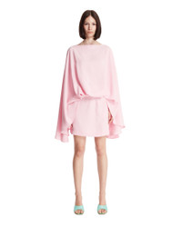 Taller Marmo Pink Viscose Eolia Mini Dress. Pink viscose blend, blouson-style top with cape design and boat neckline, wide sleeves with draping. Fitted mini skirt, regular fit. Alicia is 173 cm and she is wearing size 40. DETAILS Model: TMPF2513303 Composition: 78% Acetate, 22% Viscose Made in: ITALY Season: FW25-26