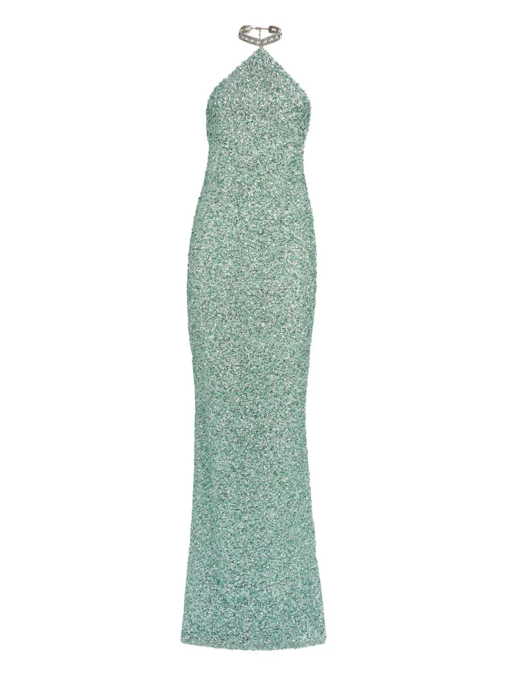 Poseidon dress Highlights - Mint green - Sequin embellishment - Halterneck - Open back - Crystal-embellished choker - Floor-length Made in Italy Composition Polyester 100% Washing instructions Dry Clean Only