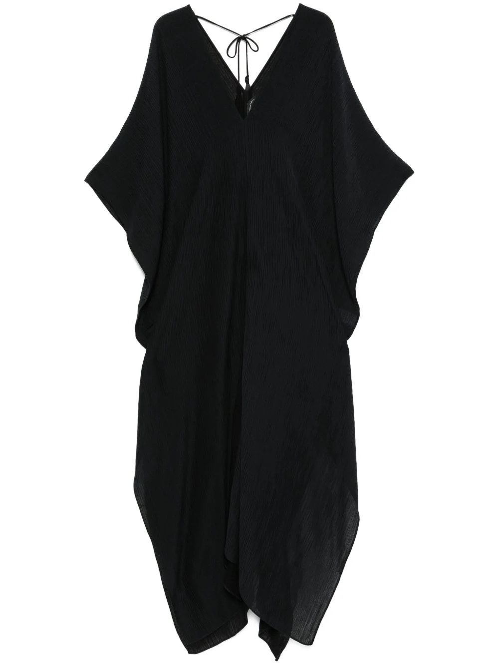 tassel-detail kaftan Highlights - Black - Rear tie fastening - V-neck - Half-length sleeves - V-back Made in Italy Composition Cotton 45%, Viscose 39%, Silk 16% SIZE & FIT Model measurements Height 5 ft 11 in(1.8 m) Bust/Chest 32.67 in(83 cm) Hips 36.22 in(92 cm) Waist 24.4 in(62 cm) Measurement LENGTH 64.96 in(165 cm) WAIST 70.86 in(180 cm) FittingInformation Designed to be unstructured, offering a loose fit throughout Made from a midweight non-stretch fabric This piece is only produced in one size; for help with this item's sizing, refer to our product measurements