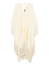 fringed midi dress Highlights - Light yellow - Tie-fastening straps - V-neck - Three-quarter length draped sleeves Made in Italy Composition Viscose 84%, Silk 16% SIZE & FIT Measurement LENGTH 48.81 in(124 cm) BUST 43.3 in(110 cm) HIPS 52.75 in(134 cm) Shoulder Width 25.59 in(65 cm) SLEEVE LENGTH 24.01 in(61 cm) WAIST 52.75 in(134 cm)