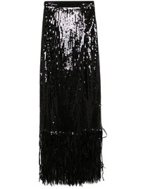 sequin-embellished maxi skirt Highlights - Black - Side zip fastening - Fringe detailing - Wrap design Made in Italy Composition Outer: Polyester 95%, Spandex/Elastane 5% Lining: Acetate 77%, Polybutylene Terephthalate (PBT) 23%