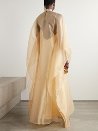 You'll be a vision in Taller Marmo's 'Sphinx' gown - there's something unforgettable about the way it catches light. Made from pale-gold organza, it has a high neck, wide sleeves and ethereal spirit, falling and folding in the most elegant way. It's underpinned with a tonal slip for coverage. Size & Fit - Fits true to size, take your normal size - Designed for a draped silhouette, cut to be worn very loose - Designed with a detachable, slim-fitting slip - Lightweight, non-stretchy fabric - Model is 177cm/ 5'10" and is wearing an IT 38 Model measurements: - Bust: 80cm/ 31.5" - Waist: 60cm/ 23.5" - Hip: 89cm/ 35" Details & Care - Pale-gold organza - Button-fastening keyhole at back - 62% polyester, 38% polyamide; lining: 74% acetate, 22% viscose, 4% elastane - Partially lined - Dry clean
