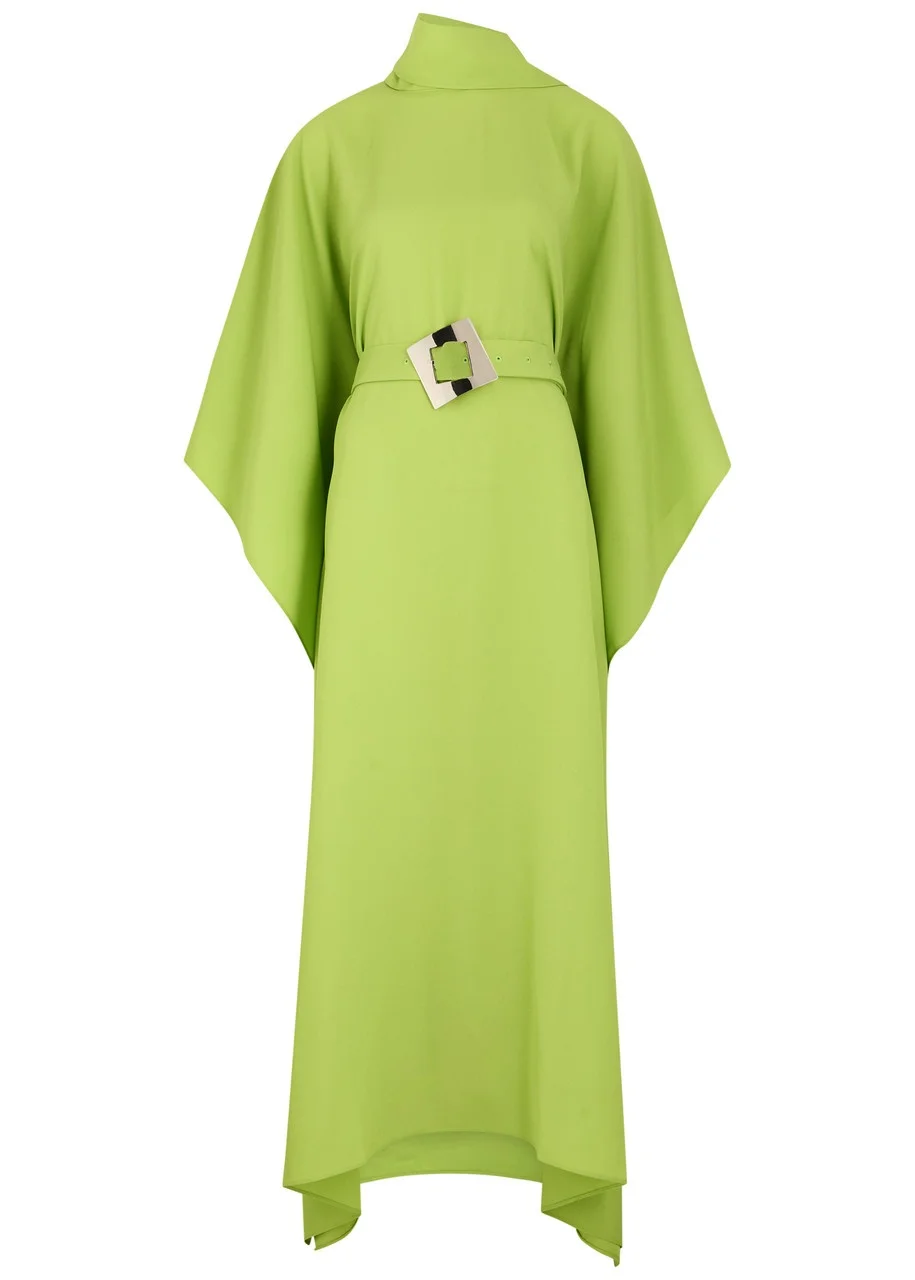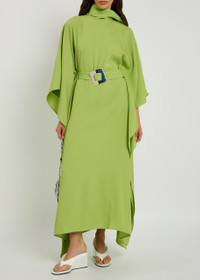 Info & Care Taller Marmo crepe kaftan dress Scarf;detail,;draped,;detachable buckle-fastening belt, split seams through sides Button-fastening keyhole at back neck 78% acetate, 22% viscose Dry clean Size & Fit Length shoulder to hem: 58 inches/ 147cm Midweight Loose fit, use belt to cinch the waist One size; will comfortably fit XXS-XL