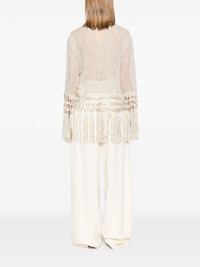 tassel-detail blouse Highlights - Ecru - Linen blend - Interwoven design - Openwork areas - Tassel detail - Rear button fastening - Crew neck - Long sleeves - Keyhole detail to the rear - Unlined Made in Italy Composition Linen/Flax 63%, Cotton 36%, Viscose 1% SIZE & FIT Model measurements Height 5 ft 9 in(1.75 m) Bust/Chest 31.88 in(81 cm) Hips 34.64 in(88 cm) Waist 24.01 in(61 cm) FittingInformation Designed to be unstructured, offering a loose fit throughout Made from a midweight non-stretch fabric, this piece offers minimal elasticity when worn