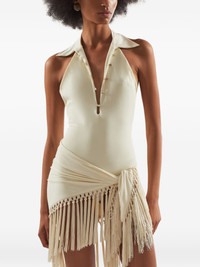 Tropicana fringe swimsuit Highlights - Neutrals - Button fastening - Open back - Fringe trim - Be mindful to try on swimwear over your own garments. Made in Italy Composition Nylon 86%, Elastane 14% Washing instructions Hand Wash