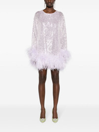 Vegas sequinned minidress Highlights - Lavender purple - All-over sequin embellishment - Round neck - Single rear button fastening - Keyhole detail to the rear - Batwing sleeves - Shift style - Feather-trim cuffs and hem - Thigh-length Made in Italy Composition Outer: Ostrich Feather 100%, Polyester 95%, Spandex/Elastane 5% Lining: Polyester 100% SIZE & FIT Model measurements Height 5 ft 10 in(1.77 m) Bust/Chest 32.28 in(82 cm) Hips 35.03 in(89 cm) Waist 25.19 in(64 cm) Measurement BUST 105.51 in(268 cm) LENGTH 28.74 in(73 cm) FittingInformation Designed to be unstructured, offering a loose fit throughout Made from a midweight non-stretch fabric This piece is only produced in one size