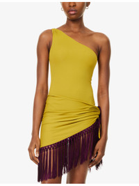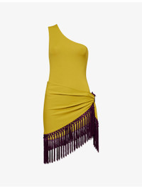 PRODUCT DETAILS - Taller Marmo swimsuit - 86% polyamide, 14% elastane; embellishments 100% acetate - Asymmetric neckline, one shoulder, high leg, fully lined, medium coverage at back, detachable fringed pareo - Hand wash cold - Made in Italy - True to size - Model is 5ft 10in/1.78m and wears a size small - Lightweight, stretchy - For hygiene reasons, we are unable to exchange or refund this product, unless faulty. Ref: R04563507
