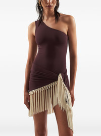 one-shoulder fringed swimsuit Highlights - Purple - One-shoulder design - Fringed detail - Draped detail - Asymmetric hem - Be mindful to try on swimwear over your own garments. Made in Italy Composition Base: Nylon 86% Body: Elastane 14% Washing instructions Hand Wash
