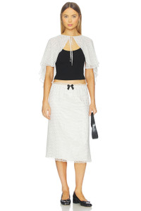 - Main: 100% Silk Lining: 100% Polyester - Dry clean only - Pull-on styling with elastic waistband - Fully lined - Front bow accent - Lace trim - Skirt measures approx 27" in length - Revolve Style No. TFLE-WQ1 - Manufacturer Style No. TFCLTSS-IPDC