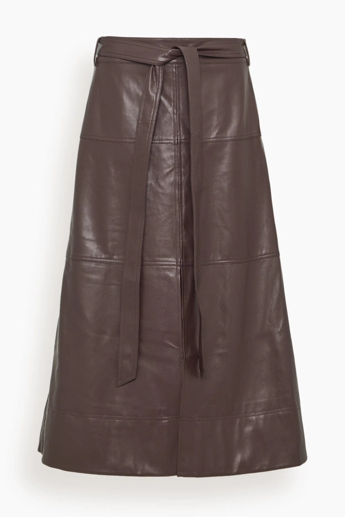 An update to Tanya Taylor's famous Hudson Skirt, the Hudley Skirt is fresh for Fall and ready for everyday wear, designed in our customer favorite vegan leather with a refined fit. Featuring tiered seaming throughout the slimmer A-line shape and a self-tie belt for added interest, Hudley is a high-waisted silhouette with the perfect proportions in mind. FIT DESCRIPTION MODEL MEASUREMENTS - Fits true to size, take your normal size - Midi skirt - High-waisted - Vegan leather - Self-belt - Lined - Tiered seam details - Hidden side zipper - Self: 60% Polyurethane, 40% Polyester - Lining: 100% Polyester - Emma is wearing a size 2 - Bust: 32” - Waist: 25” - Hips: 34” - Height: 5’7”