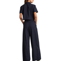 A modern approach to tailoring and the pant you'll live in this season, the Adler Pant is our pinstripe suiting wide-leg pant designed to add polish to any look. Featuring pleated tailoring at the waist, front slash pockets, and back pockets, Adler is a high-waisted pant intended to elongate and flatter with a lightweight ease. - Wide leg - High waisted - Pleating detail at waist - Unlined - Pinstripe suiting - Front slash pockets and back pockets - Center front hidden zipper with hook and bar - Pant inseam is 33" long
