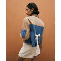 Designed in a thick cotton twill, the Gabe Jacket is this season’s must-have jacket with thoughtful detailing throughout. Featuring a contrasting collar, a denim sleeve patch pocket and back, and a canvas ribbon to tie it all together, the Gabe Jacket is an elevated take on a classic utilitarian style. Product Details: - Collared - Long sleeve - Lined bodice - Thick cotton twill front and sleeves - Denim sleeve pockets and back - Tortoiseshell front buttons - Canvas back tie - Button up Materials & Care: - Body: 100% Cotton - Denim: 80% Cotton, 20% Recycled Cotton