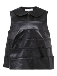 faux-leather layered tank top Highlights - Black - Sleeveless - Peter pan collar - Zip fastening - Layered panelling Imported Composition Polyester 100% Washing instructions Read Manufacturer Guidelines