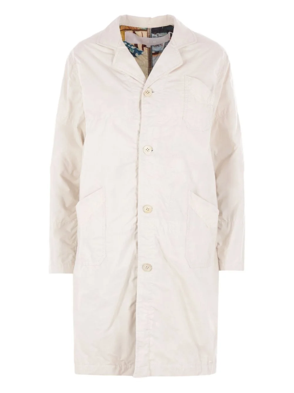 notched-collar trench coat Highlights - Light beige - Front button fastening - Side patch pockets - Long sleeves - Mid-length Imported Composition Outer: Cotton 100% Lining: Cotton 90%, Linen/Flax 10% Washing instructions Read Manufacturer Guidelines
