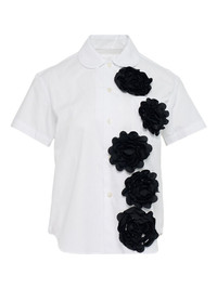 Peter Pan-collar flower-embellished shirt Highlights - White - Peter pan collar - Short sleeves - Button fastening - Rose embellishments Imported Composition Cotton 50%, Polyester 50% Washing instructions Read Manufacturer Guidelines