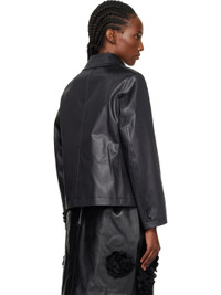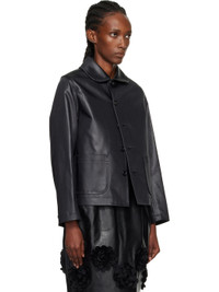 Heavyweight satin jacket. · Rounded spread collar · Button closure · Patch pockets at waist · Mock buttons at cuffs · Full woven lining Supplier color: Black Body: 100% polyester. Lining: 100% cotton. Made in Japan 252244F063000