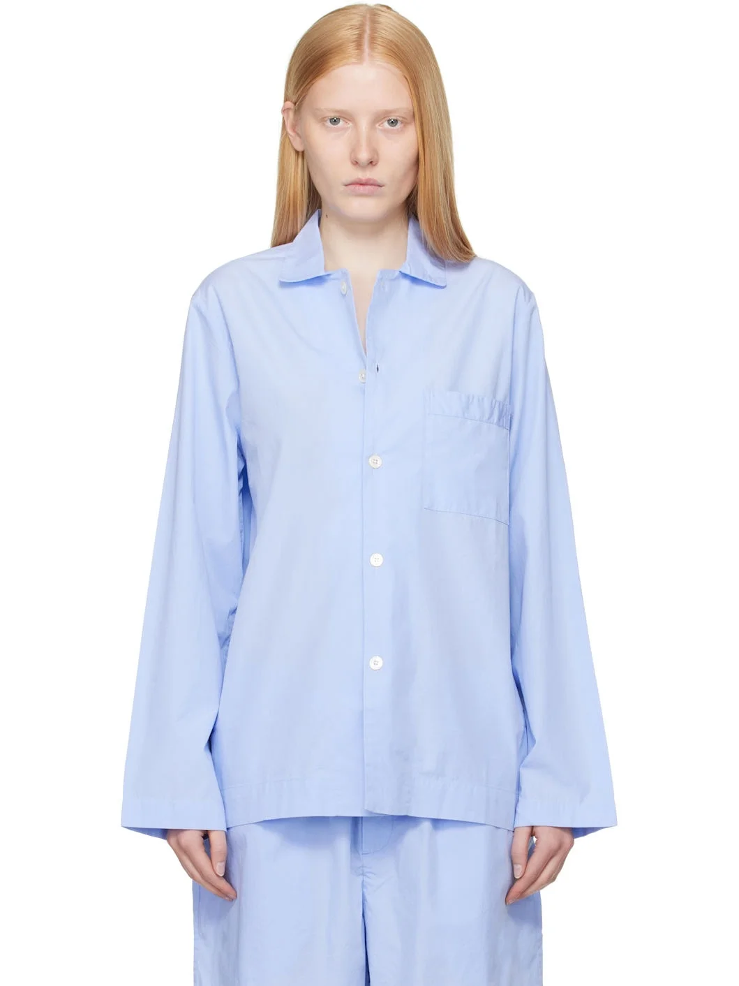 Lightweight organic cotton poplin pyjama shirt. · Certified OEKO-TEX Standard 100 · Stonewashed · Spread collar · Button closure · Patch pocket at chest · French seams at interior · Mother-of-pearl hardware Supplier color: Shirt blue 100% cotton. Made in Portugal 252482F079003