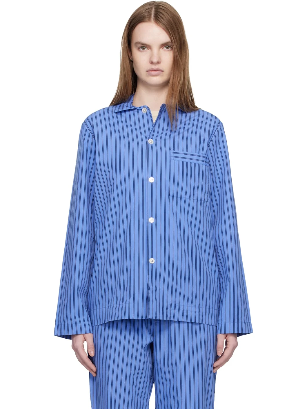 Blue Poplin Long-Sleeved Pyjama Shirt