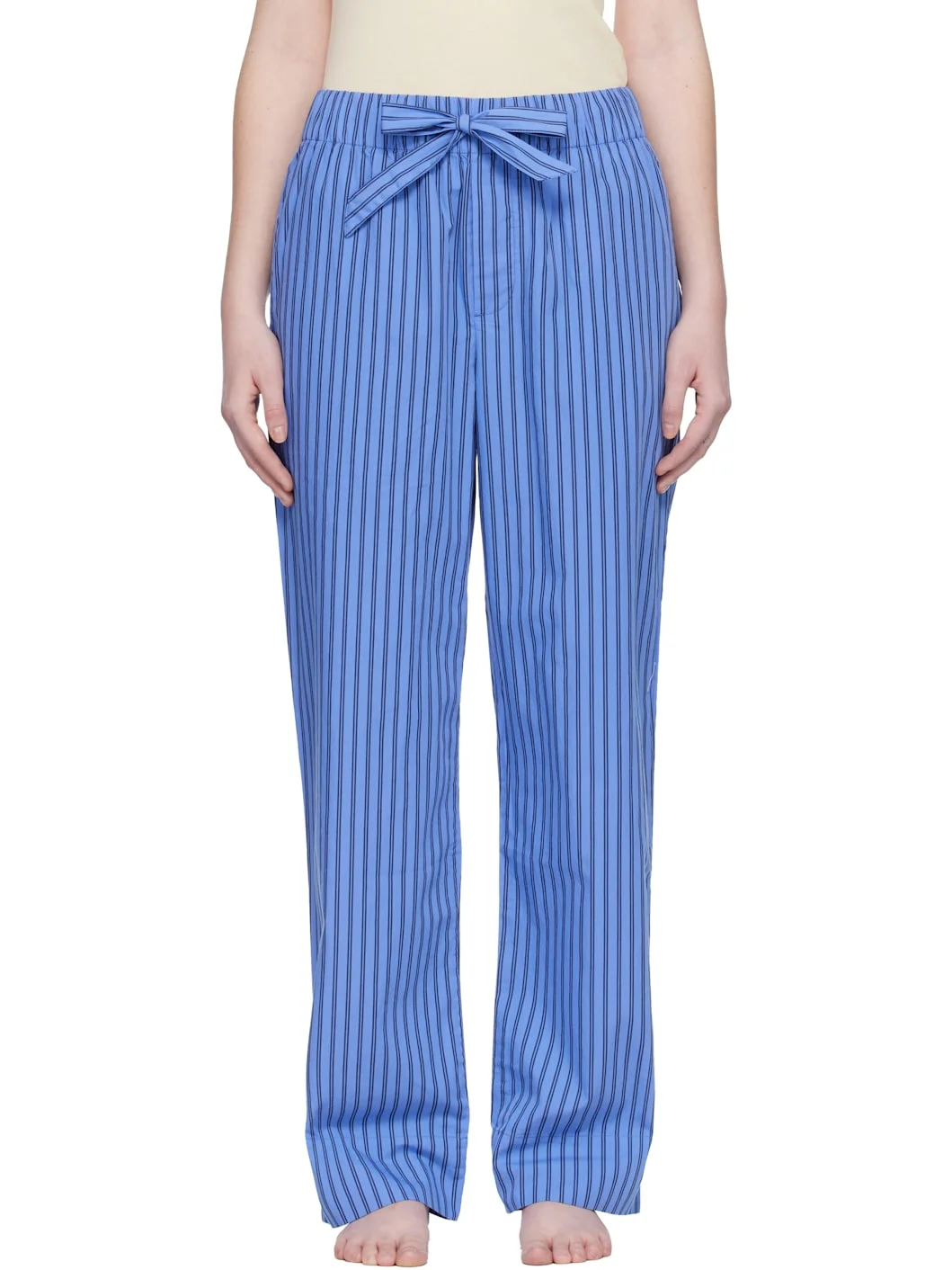 122 gsm organic cotton poplin pyjama pants. · GOTS-certified · Stripes throughout · Straight-leg · Drawstring at elasticized waistband · Three-pocket styling · Button fly · Logo patch at back pocket · Mother-of-pearl hardware Supplier color: Boro stripes 100% organic cotton. Made in Portugal 261482F079029
