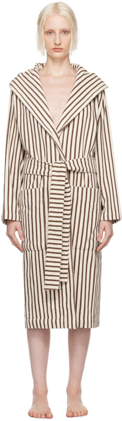 Heavyweight 385 gsm OEKO-TEX® Standard 100-certified organic cotton terry cloth bathrobe. Stripes throughout. · Shawl collar · Open front · Belt loops and detachable self-tie belt · Patch pockets Supplier color: Kodiak stripes 100% organic cotton. Made in Portugal 242482F077017
