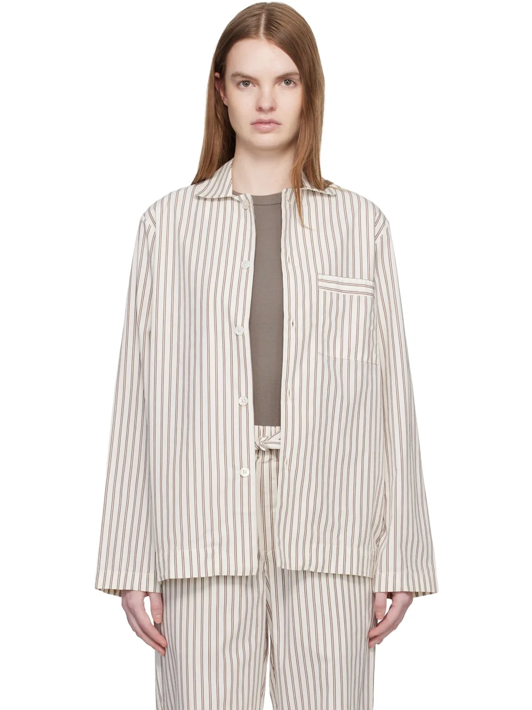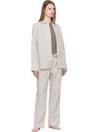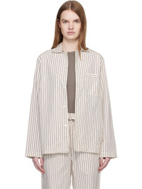 Off-White & Brown Poplin Long-Sleeved Pyjama Shirt