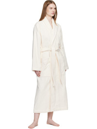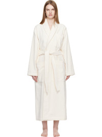 Heavyweight 385 gsm organic cotton terrycloth bathrobe. · Shawl lapel · Belt loops and detachable self-tie at waist · Patch pocket at chest and waist · Logo flag at waist · Locker loop at interior collar Supplier color: Ivory 100% organic cotton. Made in Portugal 261482F077019