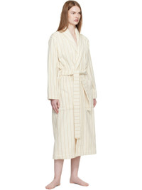Heavyweight 385 gsm organic cotton terrycloth bathrobe. · GOTS-certified cotton · Striped throughout · Shawl lapel · Belt loops and detachable self-tie at waist · Patch pocket at chest and waist · Logo flag at waist · Locker loop at interior collar Supplier color: Sienna Stripes 100% organic cotton. Made in Portugal 261482F077021