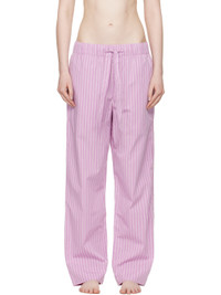 Lightweight organic cotton poplin pyjama pants. Stripes throughout. · Certified OEKO-TEX® Standard 100 · Straight-leg and loose-fit · Stonewashed · Drawstring at elasticized waistband · Three-pocket styling · Button fly · Logo patch at back pocket · French seams at interior · Mother-of-pearl hardware Supplier color: Purple pink stripes 100% cotton. Made in Portugal 252482F079021