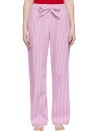 122 gsm organic cotton poplin pyjama pants. · GOTS-certified · Stripes throughout · Straight-leg · Drawstring at elasticized waistband · Three-pocket styling · Button fly · Logo patch at back pocket · Mother-of-pearl hardware Supplier color: Purple pink stripes 100% organic cotton. Made in Portugal 261482F079033