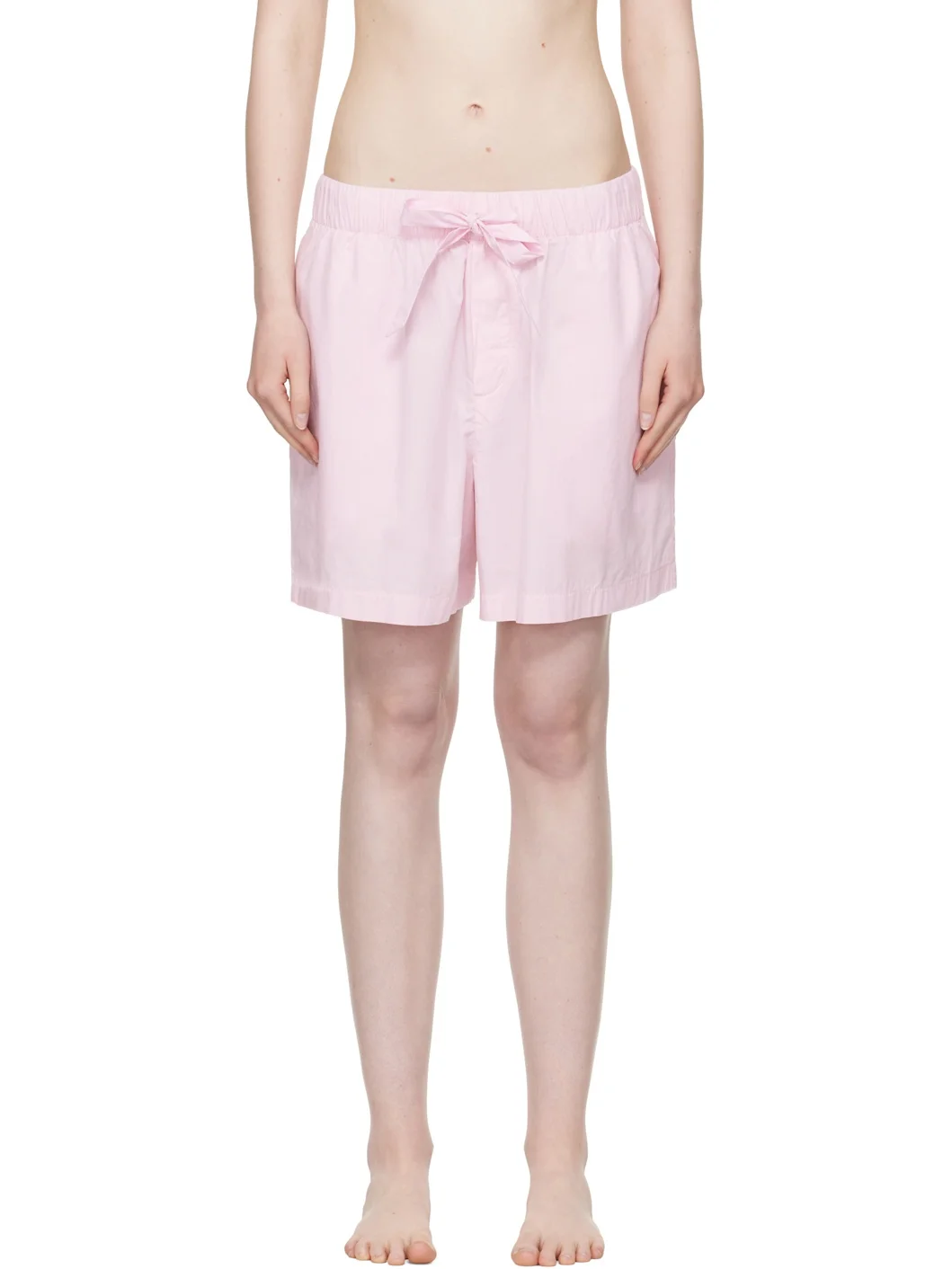 Lightweight organic cotton poplin pyjama shorts. · Certified OEKO-TEX® Standard 100 · Wide-leg · Stonewashed · Drawstring at elasticized waistband · Four-pocket styling · Button fly · Logo patch at back pocket · French seams at interior · Mother-of-pearl hardware Supplier color: Soft pink 100% cotton. Made in Portugal 252482F079038