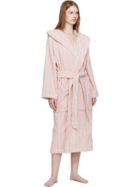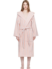 Heavyweight 385 gsm organic cotton terrycloth bathrobe. · GOTS-certified cotton · Stripes throughout · Hood at shawl lapel · Belt loops and detachable self-tie at waist · Patch pockets at waist · Logo flag at patch pocket · Locker loop at interior collar Supplier color: Candy Stripes 100% organic cotton. Made in Portugal 261482F077000