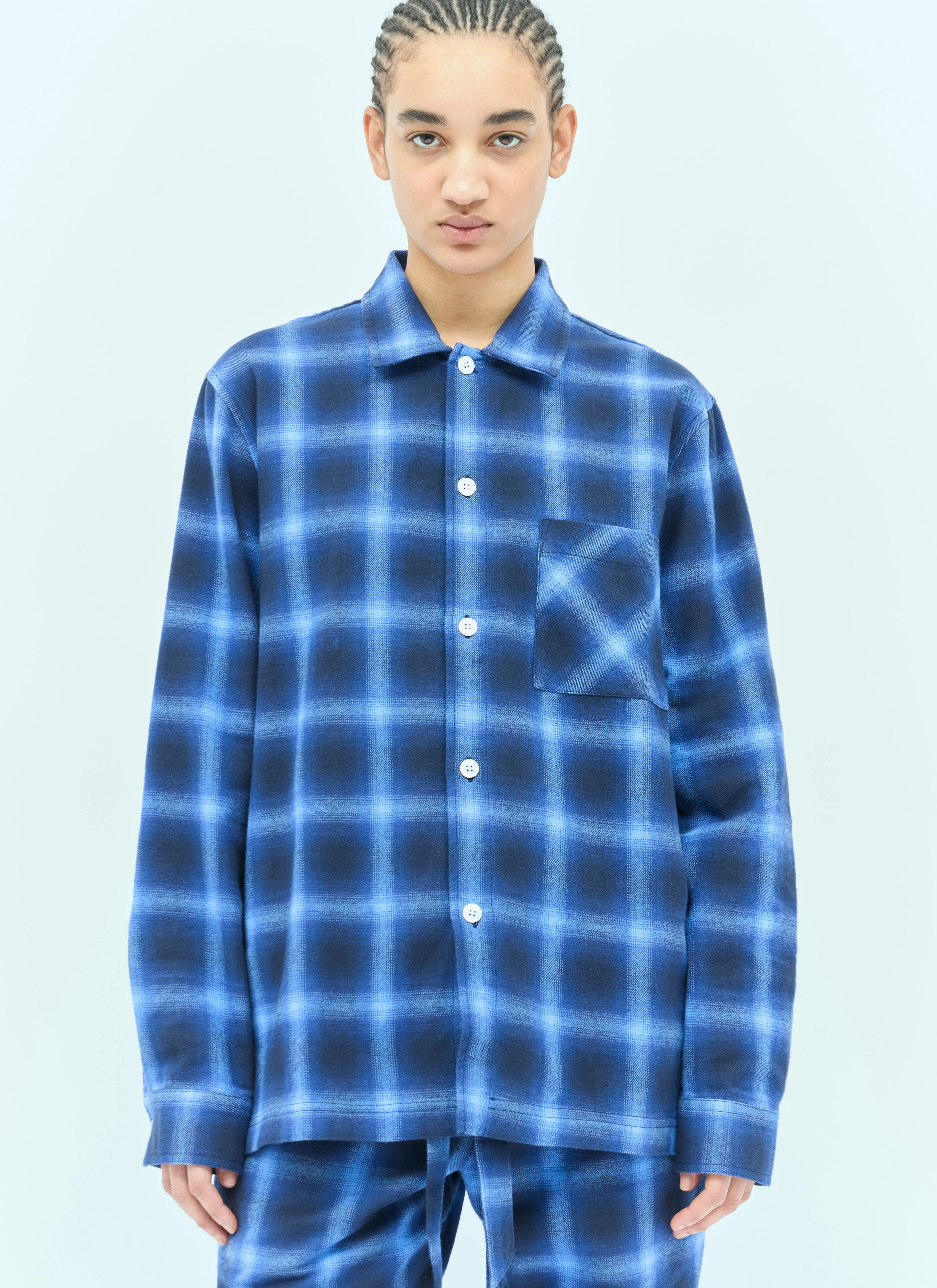 Pyjama shirt in cotton with plaid motif. - Classic collar - Front button fastening - Long sleeves - Chest patch pocket - Side logo patch - 100% Cotton. Machine wash cold - Color: Navy - Code: SWT-DABLPL-